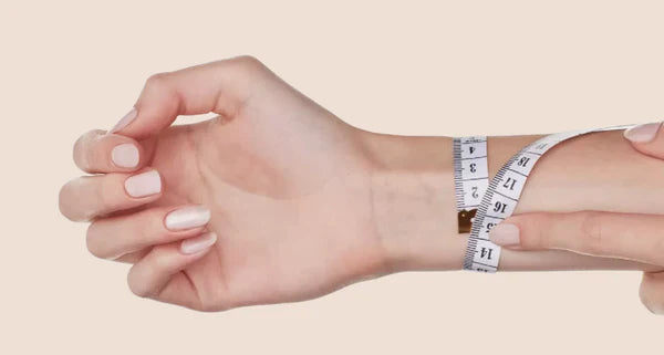 Con il palmo della mano aperto e rivolto verso l'alto, avvolgi il metro intorno al polso appena sopra l'osso del polso. Annota la misura del polso.